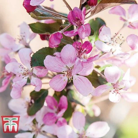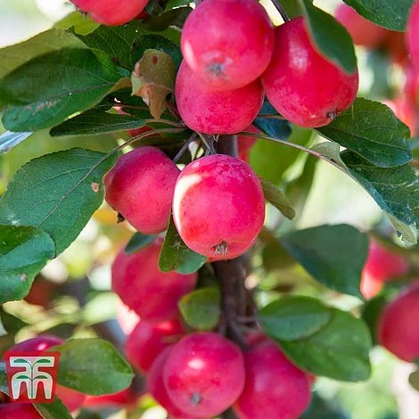 Everything about this tree is in miniature – except the size of the crop! Apple ‘Appeltini’ is a compact new variety reaching just 2m tall with maturity, making it perfect for a large pot on the patio! Its pretty pink blossom makes an attractive feature in spring, followed by a plentiful crop of tiny, golf-ball sized apples. The fruits have purple skins that ripen to glossy, rosy red with a lovely sweet flavour. These bite-sized fruits have plenty of appeal for kids’ lunch boxes and make excellent toffee apples too. Fruits can be harvested from August to November. Height and spread: 2m (6′).