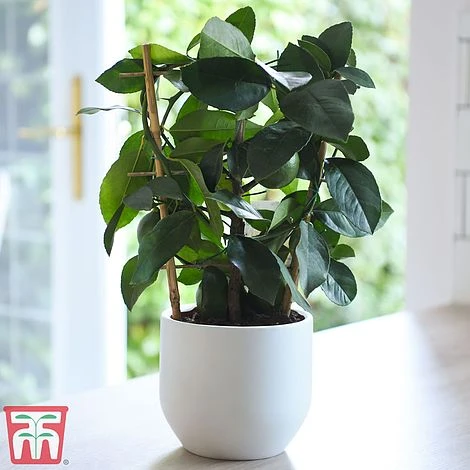 In Latin countries the fruits of this symmetrical, compact plant are known as ‘agri-dulce’ (Sweet and Sour). The small, juicy orange fruits of Orange ‘Calamondin’ have a bitter taste at first before leaving a delicious sweet flavour in your mouth. Set against a foil of glossy, dark foliage, the delicate clusters of tiny white flowers fill the air with their delicious fragrance throughout the year. The fruits that follow may take up to a year to ripen but are well worth the wait. Oranges can be harvested as they ripen and once picked, will keep for up to 2 weeks.