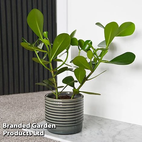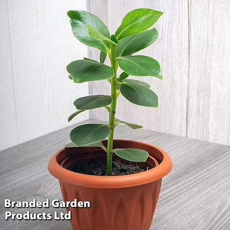 In its native Caribbean, this robust tropical shrub is a bit of a monster, growing off trees and eventually strangling its host. Fortunately, it won’t do this indoors! But plants are quick growers and small window sill specimens can eventually grow several feet if regularly re-potted. It bears handsome, leathery, deep green leaves about 6 inches long. The leaves are so thick, it’s possible to engrave your name on them and watch them grow, hence its nickname: The Autograph Tree. In the Caribbean, the leaves were once engraved with numbers and designs and used as cheap playing cards! Maximum height: 1.5m (60in). Spread: 60cm (24in).