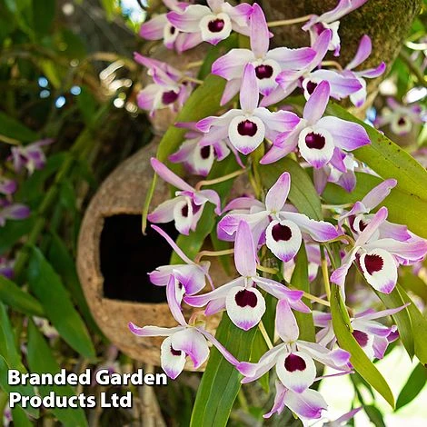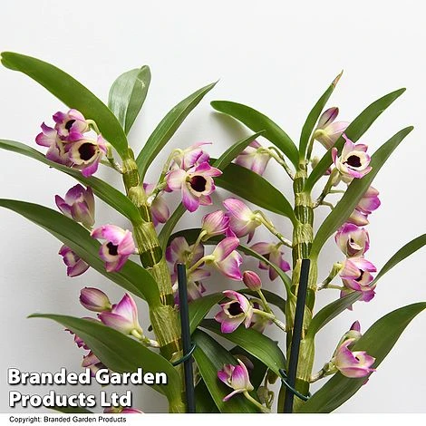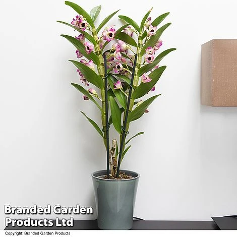 Two sturdy, bamboo-like stems crowded with masses of creamy flowers, blushed with pink and studded with a striking dark eye. Dendrobium nobile ‘Sunny Eye’ is a prolific bloomer and will hold its flowers for up to eight to ten weeks from spring to summer. It makes a glamorous showpiece, instantly oozing style in either modern or traditional interiors. What’s more, these exotic flowers also have a lovely sweet perfume. Dendrobium nobile ‘Sunny Eye’ makes a luxurious gift for a special person, or why not just treat yourself! Height: 30cm.