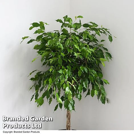 An attractive braided stem supports a canopy of gently weeping branches covered with glossy green foliage making an impressive, upright focal point. Ficus benjamina ‘Exotica’ is particularly good at removing toxins and improving air quality within your home. Height: 300cm (118″). Spread: 150cm (59″).