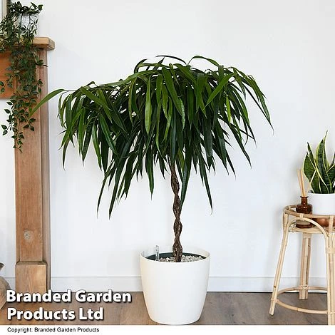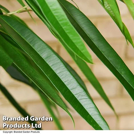 Ficus binnendijkii βAliiβ is an unusual Ficus bearing long leaves that taper at the ends creating a graceful silhouette. An attractive braided stem supports a canopy of slender foliage making an impressive, upright focal point. This variety is much less prone to dropping its leaves than other Ficus and is particularly good at removing toxins and improving air quality within your home. Height: 300cm (118″). Spread: 150cm (59″).