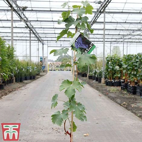 Grape ‘Cabernet Franc’ is a self fertile variety that is best grown in a large glasshouse or a very protected site in milder parts of the UK. This is a classic French Claret producing small black fruits which ripen late in the season – hence the need for growing under cover in most parts of the UK. The dark purple-red grapes produce superb wine with a delicious blackcurrant note, and makes a refreshing juice if sweetened. Height of cordon trained vine: 1.8m (6’). Spread of cordon trained vine: 1.5m (5’). Untrained plants may reach up to 8m (26′).