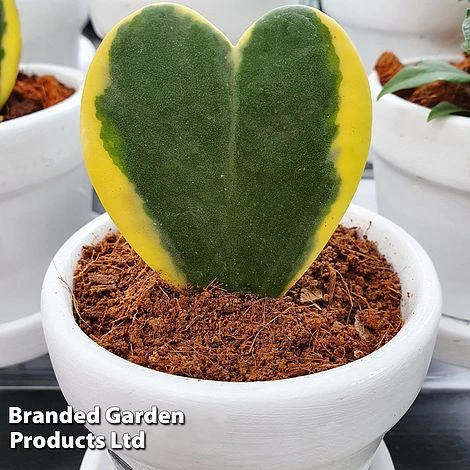 A striking succulent forming a thick, waxy green leaf in the shape of a heart, encircled by a golden margin. The perfect gift for Valentine’s Day or whenever you want to show some love, Hoya kerrii ‘Variegata’ makes an unusual, easy-care addition to a houseplant collection. Maximum height and spread: 20cm (8in).