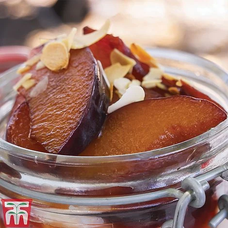 Plum ‘Opal’ is one of the most reliable garden varieties, and is suitable for growing throughout the country. Slightly earlier to crop than ‘Victoria’, this dessert plum produces a heavy crop of excellent quality, small, yellow skinned fruits with an attractive red flush in July and August. The golden flesh easily separates from its stone and has a delicious gage flavour.