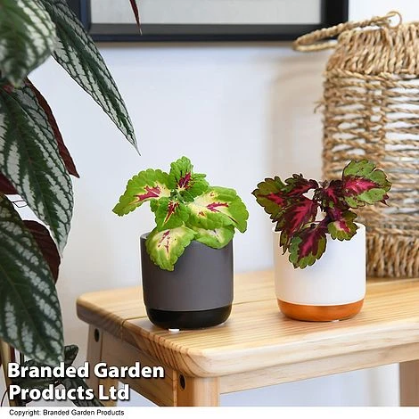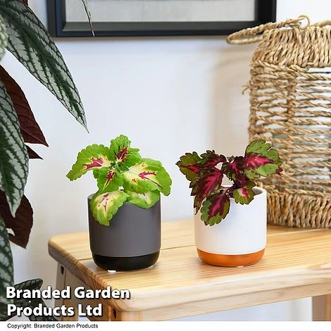 Solenostemon scutellarioides ‘Mix’ presents a dazzling kaleidoscope of chartreuse, scarlet, pink, gold and maroon, showcasing the very best of these wonderfully versatile foliage plants. The velvety leaves are irresistibly strokable and held in graceful tiers, each leaf elegantly pointed and finished with a serrated edge. The intricate details of each variety will captivate you throughout the season, with painterly splashes, finely drawn veining and picotee edging. Better still, these are tough, unfussy plants shaking off wind, adapting to rain or shine and readily pushing out bushy branches of alluring foliage that don’t require pinching out and will light up your bedding displays with exciting new colour combinations. Height and spread: 45cm (18in).